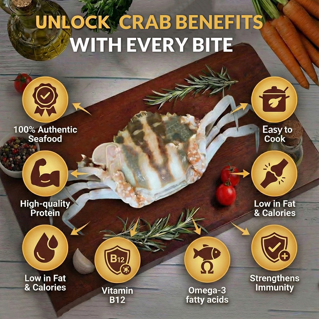 Crab is a flavourful seafood  known for its sweetness, delicate meat. Freshly sourced and hygienically cleaned to ensure premium quality. Perfect for preparing rich curries, masala dishes and traditional seafood recipes.